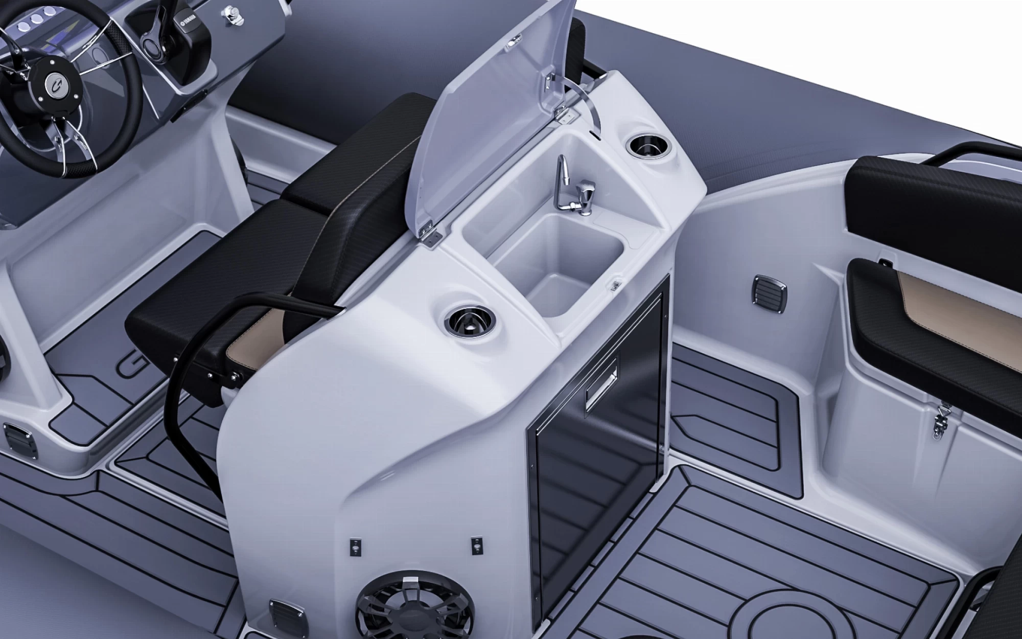 Nagyméretű hűtő-fagyasztóval, mosogatóval, édesvízrendszerrel és hatalmas napozóágyakkal felszerelt, funkcionális, tágas és luxus RHIB hajó a szórakozáshoz. Fedezd fel az igazi kényelmet és a nyugodt hajókázást!